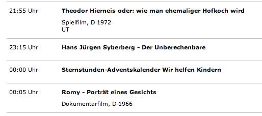 In Berlin Zeughaus-Kino nun der Parsifal. Vor dem Hitler-Film am Wochenende. Was ist es, was den Film in der Länge der Partitur charakterisiert, kennzeichnet, in Erinnerungen oder Erwartungen. Da ist einmal die Zweiteilung des Parsifal in zwei Figuren, Mann und Frau. Und wie sie ineinander übergehen und wann.