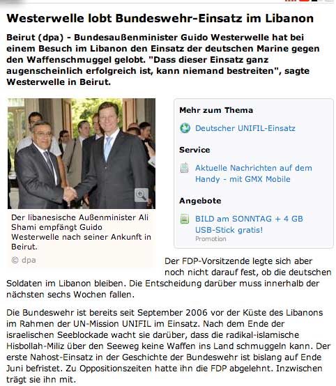 wo war eigentlich die Bundeswehr an den Küsten von Israel. Im Einsatz Schiffe fernzuhalten, die sich unbefugt nähern. Waffen schmuggeln. Aber Essen, Kinderspielzeug? Vor Libanon, und Libanon liegt neben Gaza. Die Schiffe seien erfogreich heisst es, mit modernsten Geräten. Nichts gemerkt. Israel war sehr dafür, dass es dei Deutschen machen. Die die wegschauen.