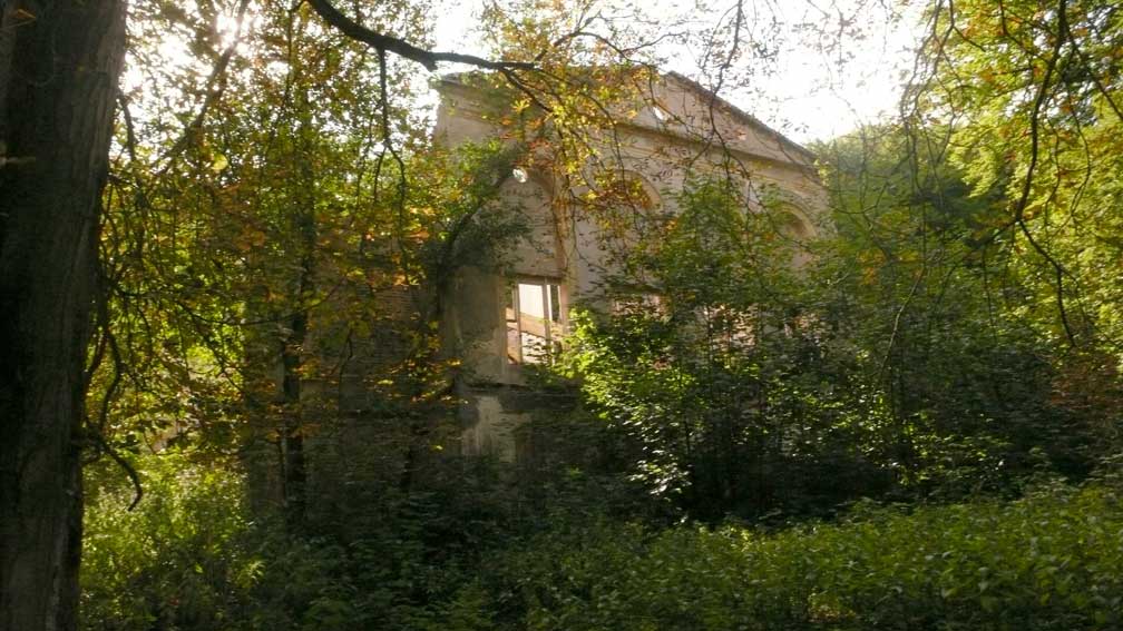 auf der anderen Seite von Fluss und Bahn oben im Wald das Tannenrestaurant für die Reiter/Ulanen und unten im Ort die Cafes auch Wirtshäuser und Hotels. Und über allem der Fluch.