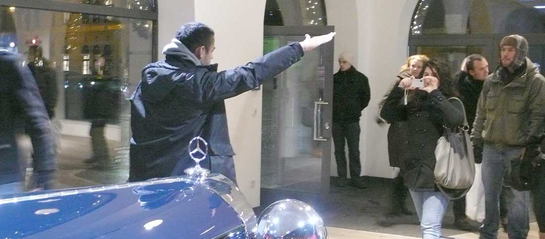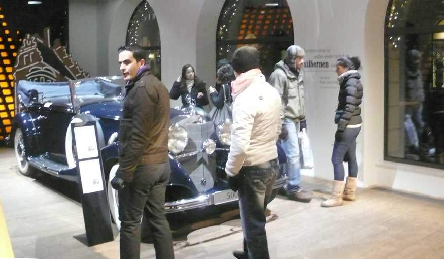 Mercedes an der Feldherrnhalle steht ein 500 Kompressor aus dem Jahre 1934-38