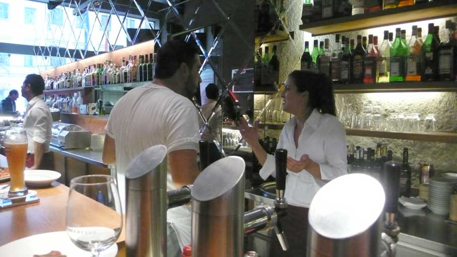 und erfreut die vorbeigehenden Menschen, die mal reinkommen.Besonders die Touristen.