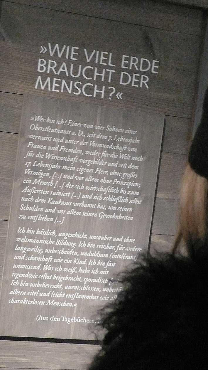 der Schriften und Fotos, Filme von damals und die heutige Situation in Jasnaja
