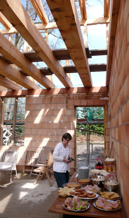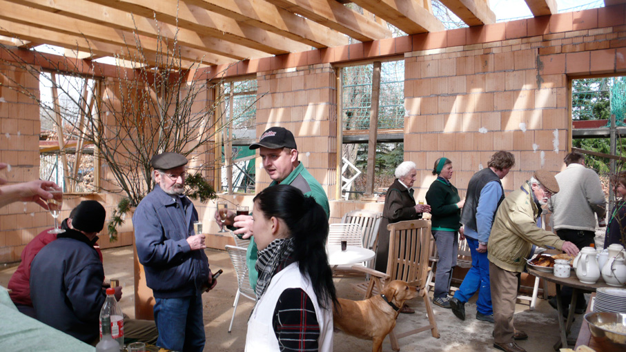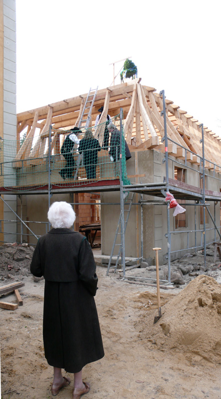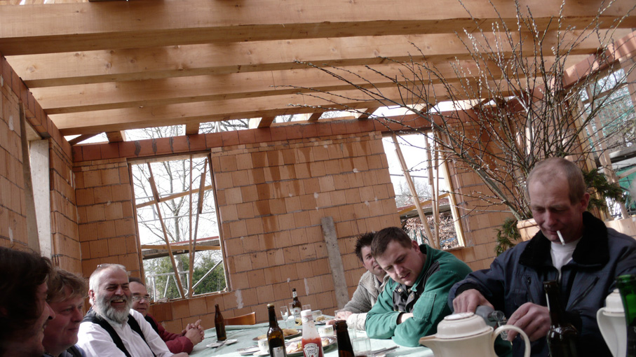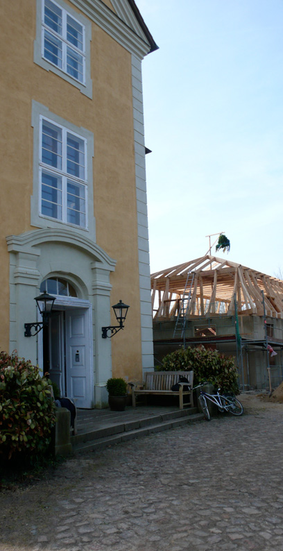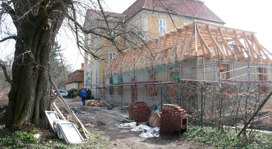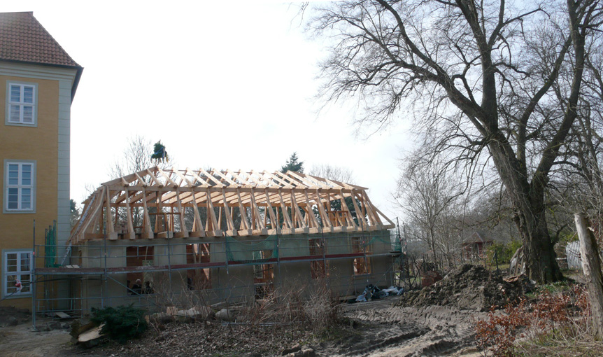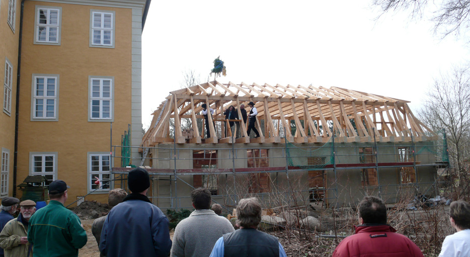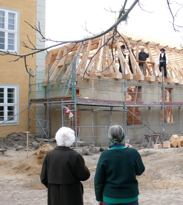 Ausflug nach Quitzin bei Grimmen, Richtfest Kavaliershaus rechts.