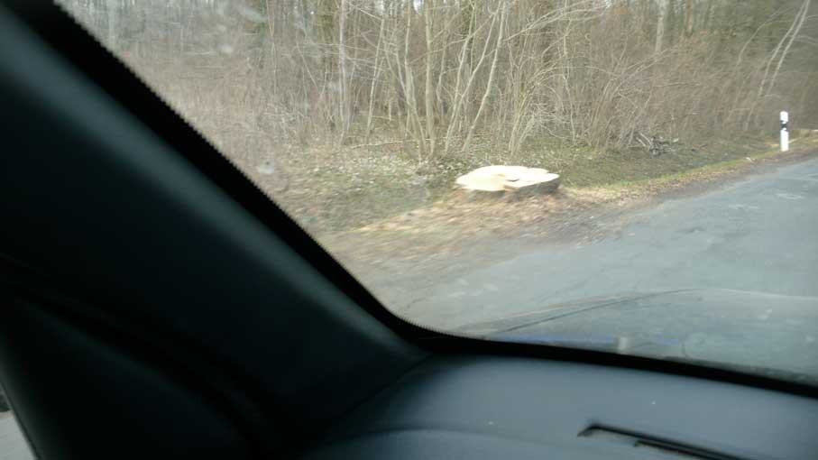 "Kerngesund" sagte man früher. Die Ringe der Jahre aller gefällten Bäume am Rand der Strasse zeigen, dass es von innen keinen Grund gab sie zu töten. Welches Gericht straft die Mörder.
