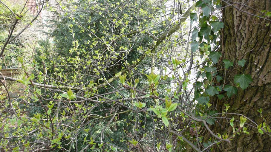 Die Nachbarin hat ihn gefällt, heute eine Pracht uns als erstes Grün in jedem