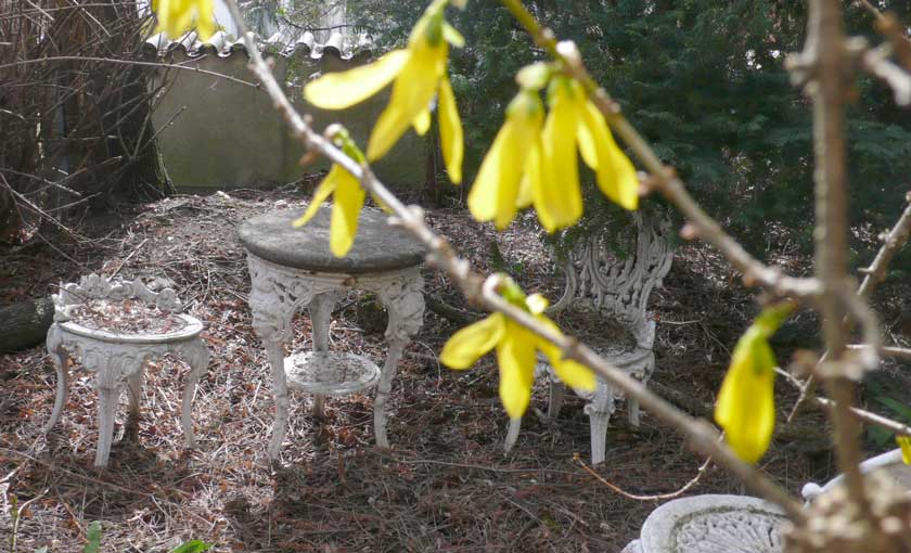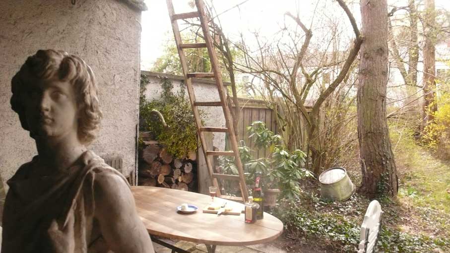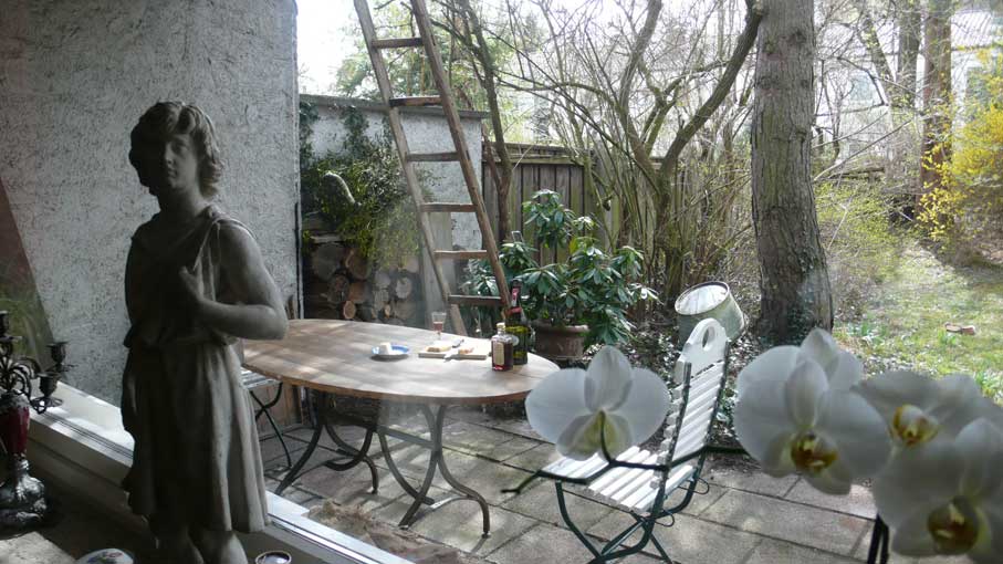 Beide gepflanzt als wir herkamen, die Trabenkirsche, nun haushoch, wie ein