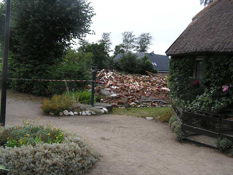 Wir finden den Umgang mit der Geschichte barabrisch und skandalös, gerade für eine Tourismusregion. Das Haus war ein Paradebeispiel dafür, wie Putbusser Klassizismus in die Dörfer ausgestrahlt hat. Siehe die beiden Sphinxen in der Haustür.