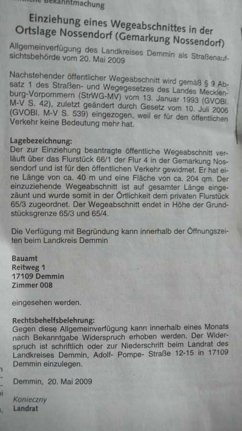 Als ich vor 10 Jahren jetzt mich entschloss den Kampf um Nossendorf aufzunehmen, und wiederzukommen, gerade dorthin, wovor die gute Margarethe Krieger warnte als vor einem rettungslos deformiertem Land, und sie meinte damit auch die Menschen, ahnte ich nicht wie das aussieht bis heute in ihnen. Nun bin ich immer noch da. Tat, wo ich Haus und Hof wieder erwarb, das nörige und sehe ihren Zustand weiter in Not. Immer in dem alten Kinder-Glauben(!), einer müsste doch verstehen und sehen, um was es geht.