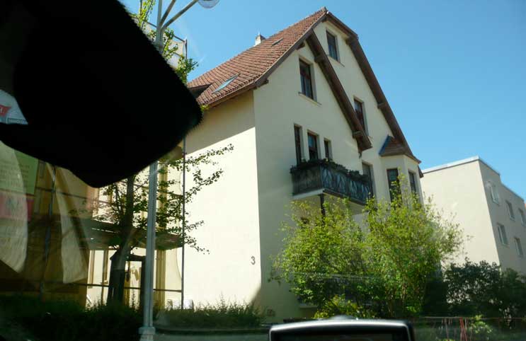 wir aber fahren links und sind schon da. Das Haus gegenüber.
