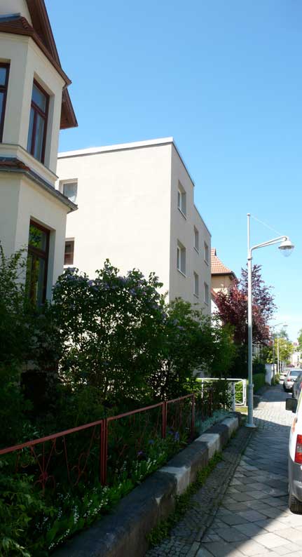 rechts das Haus ist neu, vorne alle Ornamente des 19Jh. sind weg und der historische Zaun, im Haus wohnte zuletzt ein Funktionär des SED(Erich Fabian), der die Schwägerin unserer besten Freundin heiratete.