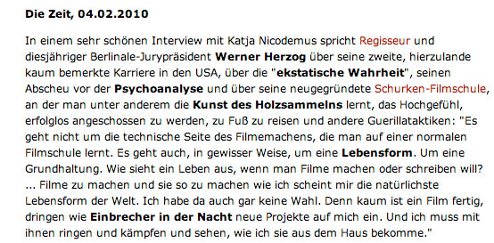 Der Film des Kinos oder des Fernsehens, von Anfang an als Ware verstanden oder Propaganda, alten Repräsentationsaufgaben oder des vorübergehenden Jahr-Markts vergleichbar, ist ein Produkt dieses Markt des Geldes, und ist so gebunden an Vergänglichkeit der Kasse auf Zeit. Wie also als des Lebens und der Menschen überleben jenseits dieser Mechanismen der Händler und des Konsums. Und doch noch im Auftrag der Zeit. Alptraum ihnso zu sehen und als Gegenstand solcher Händel und unbestimmbarer Augen und beliebiger Orte wie Wegwerfware und Design des momentaner Moden blossen Wohllebens.