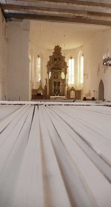 -was sie einmal Gottes Haus nannten- die Erneuerungsarbeiten, zuerst an den Wänden, dann die Decke des Hauptraums.