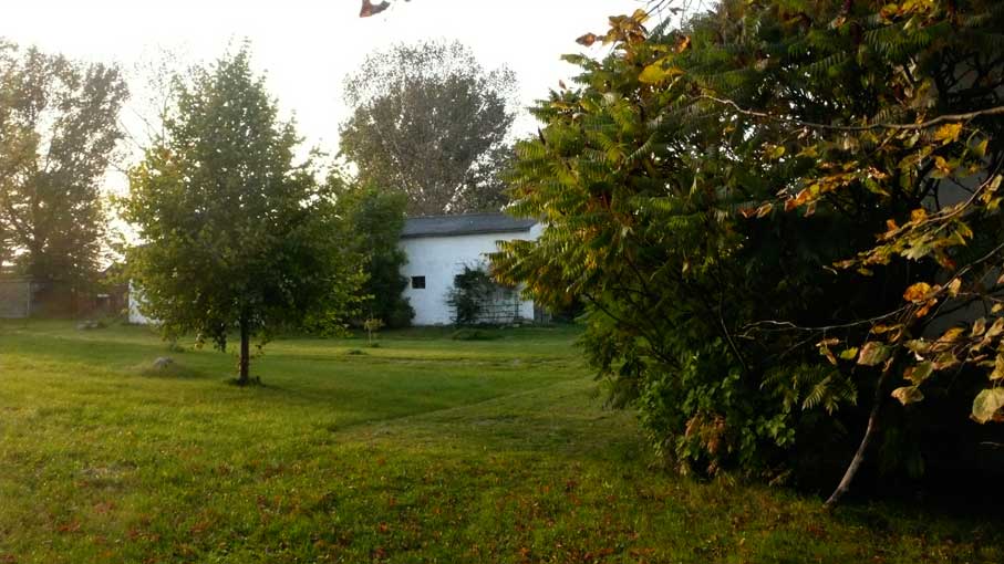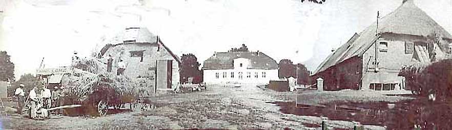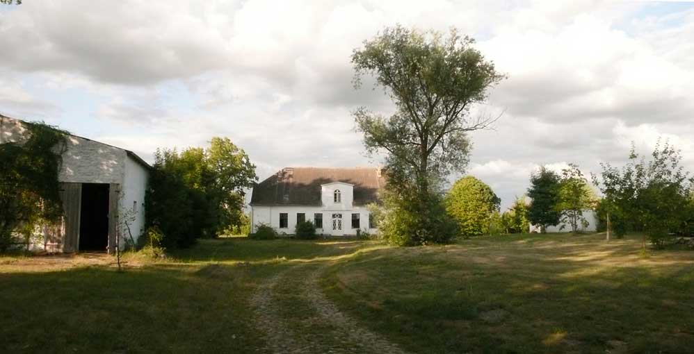 Taubenhaus links noch da, Pferde-und Schweinestall noch da, die Stellmacherei rechts noch da, dazu Garagen.