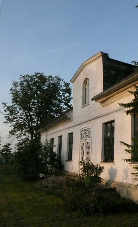 Der Kirchturm DDR Fassung und historisch. Immer aber als Blickachse vom Gutshaus.