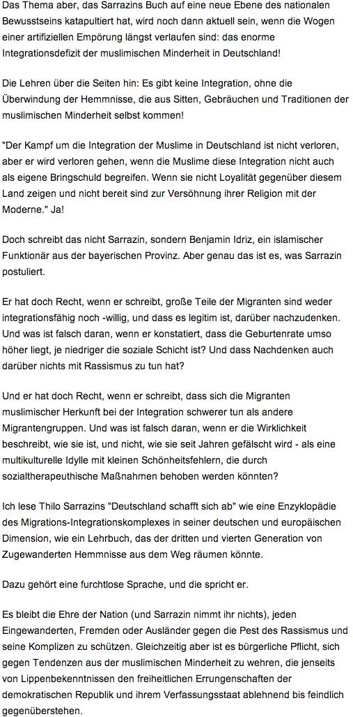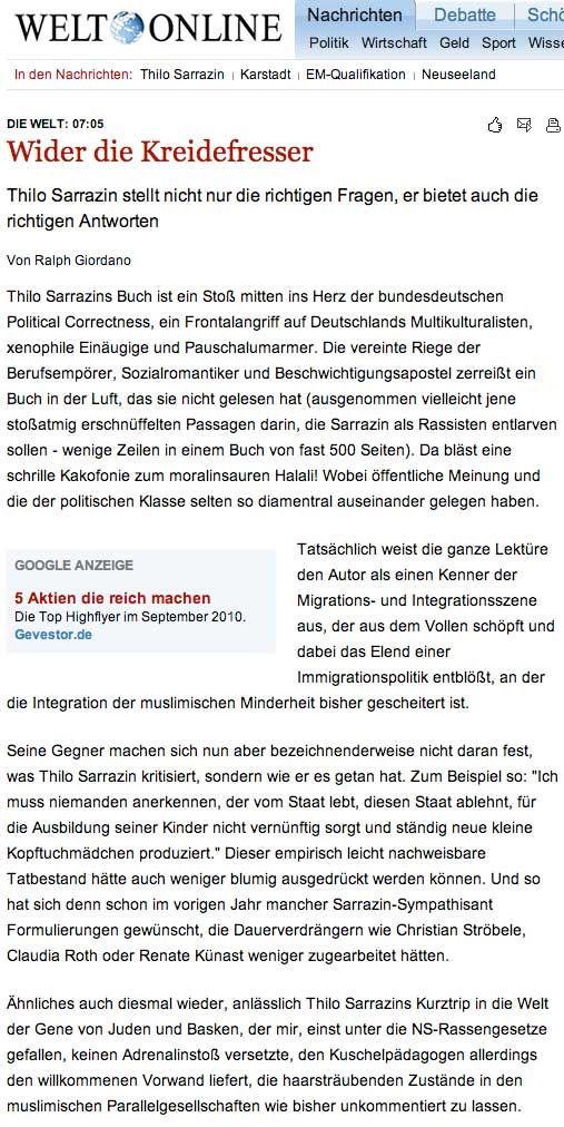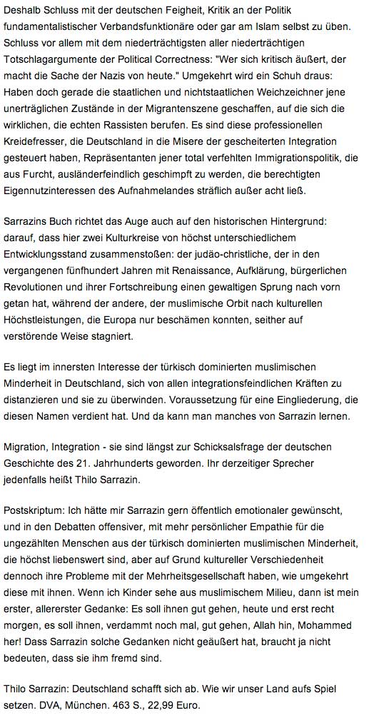 Deutschland weiss, dass man das nicht tut. Alle korrekten Kräfte der Öffentlichkit üben Konsens, wie sies gelernt haben und sagen, dass sei auch schlecht für das Ansehen und die Geschäfte(!).