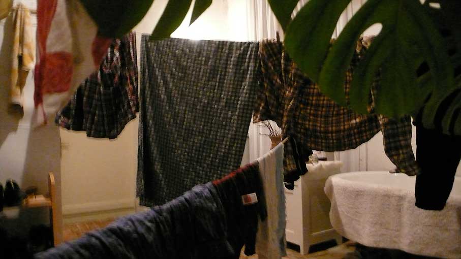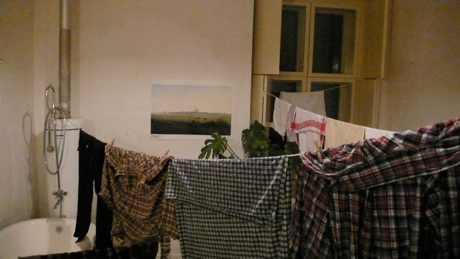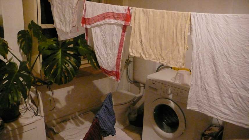Waschmaschine nach unter verlagert, neben die Küche, die immer warm ist. Wie in alten Zeiten. Aber das Hängen der Wäsche bei diesen Temperaturen, wie machen es die anderen wohl hier.