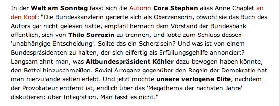 Da haben wir sie wieder diese Farce. Von der auch in der Sache Sarazzin gesprochen wird. Wenn einer ein Urteil sprechen soll, da er doch vorher schon vollendete Tatsachen geschaffen hat.