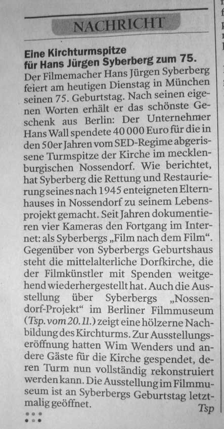 Installation in der Kinemathek/Das Projekt Nossendorf herzustellen>>>>>>.