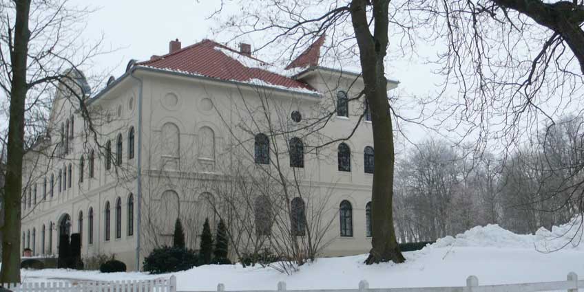 gleich nach Nossendorf das Tor der beiden Eichen links und rechts
