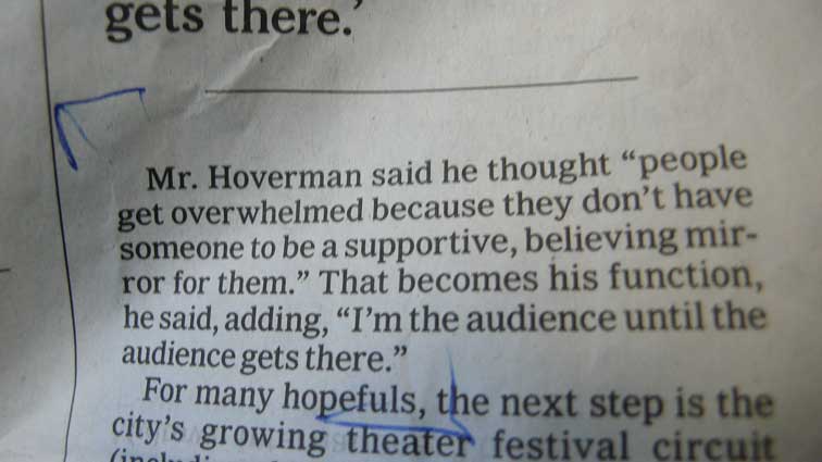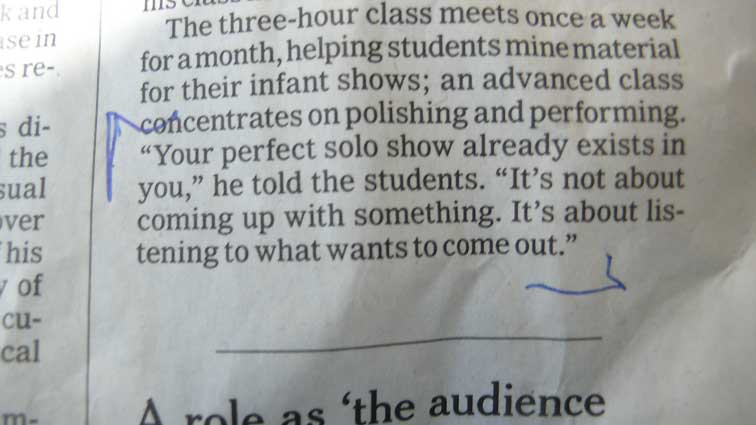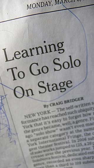 und lese von der Entdeckung des Monologs in NY. Ein Drittel aller Theateraufführungen nun Soli. Mit Schulen und Patenten.