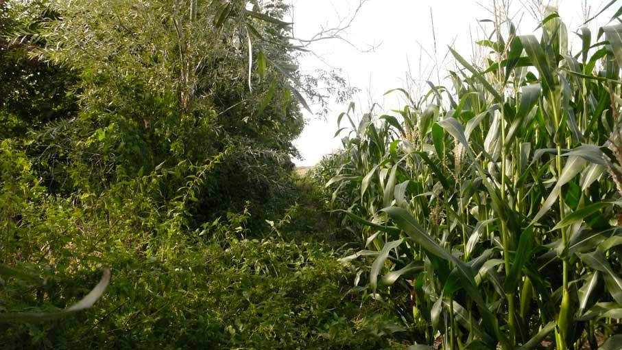die angrenzenden Koppeln bis an die Felder sind kultiviert,