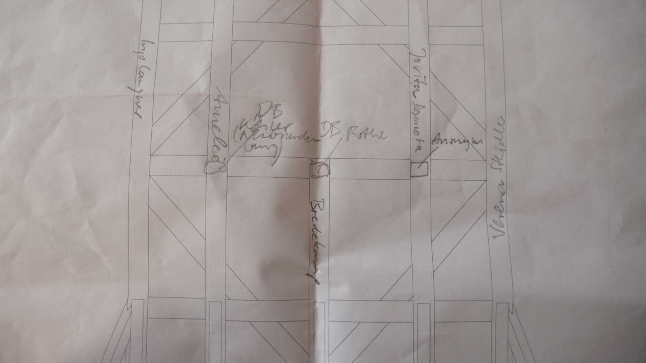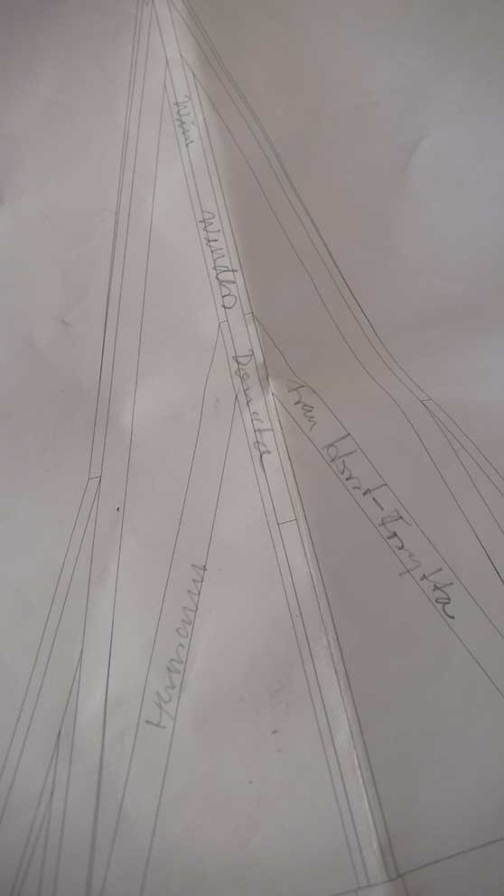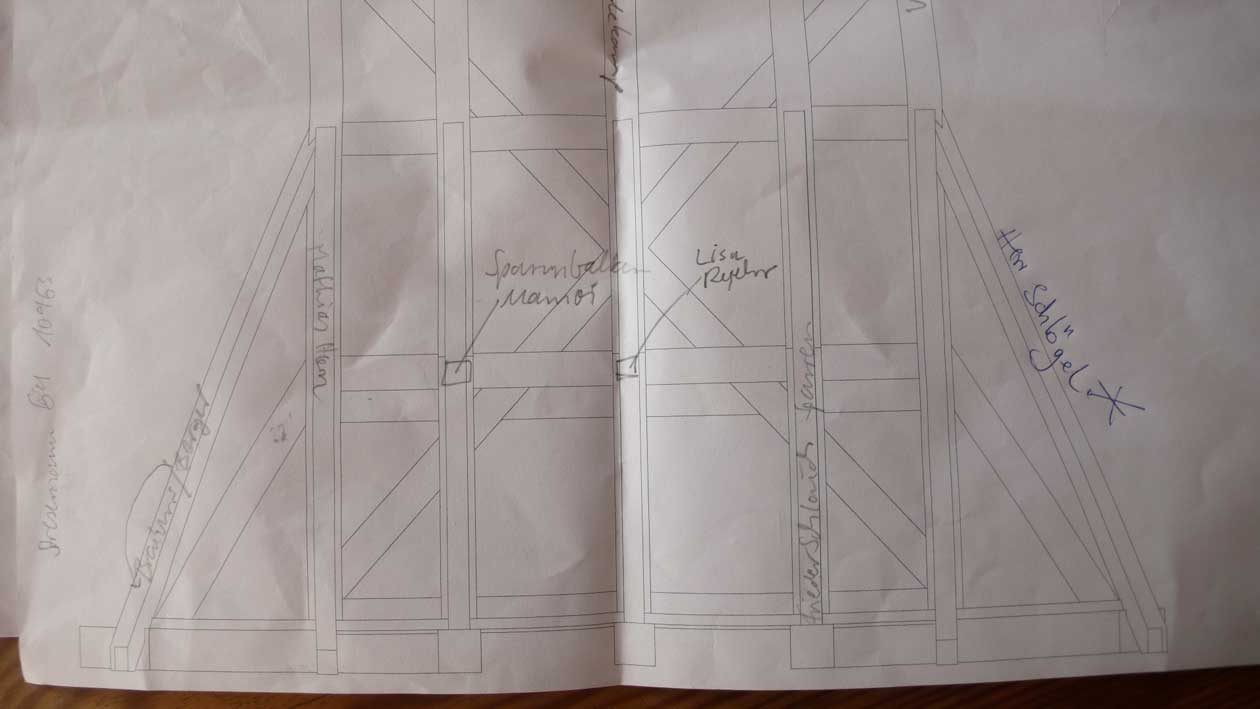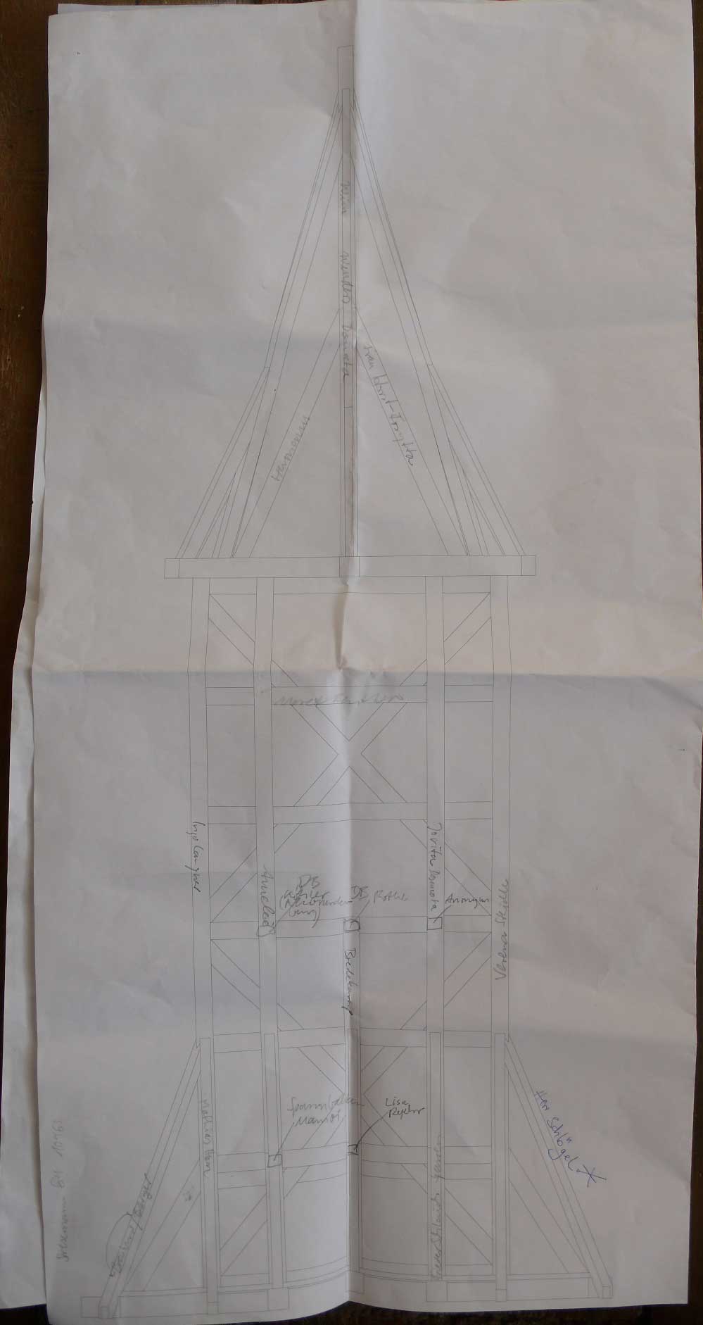 Plan zur Herstellung des Modells ( 0,70 m) für die Wiedererrichtung der Turm-Spitze in ihrer natürlichen Höhe (15 m).