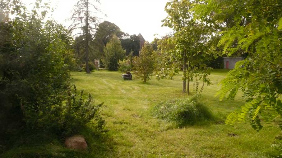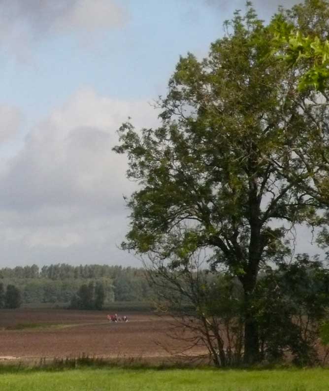Nun gehen auch die Kinder des Kindergartens auf dem Weg über das Feld in den Wald