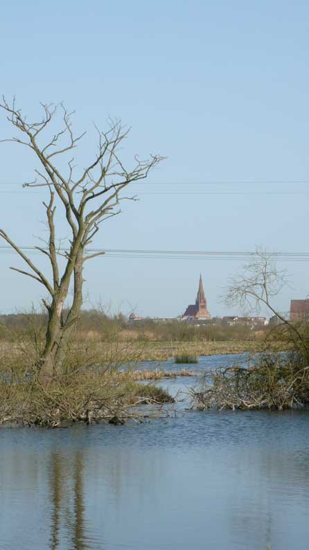 Auf der Rückfahrt sehen wir das Wasser der Trebel langsam zurückgehen, Enten und Schwäne sagen, dass es gut ist, wenn der Mensch sie nur bei sich lässt.