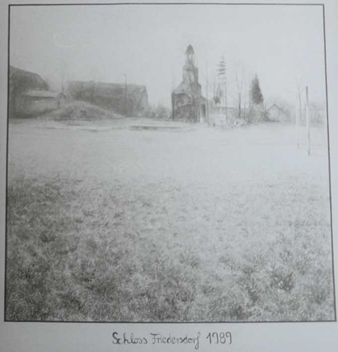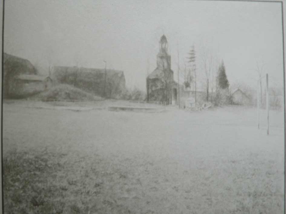 Haus und die Kirche. Der Turm war geblieben. Anstelle des Schlosses ein Fussballfeld.