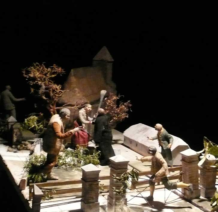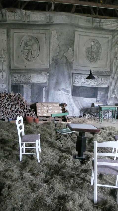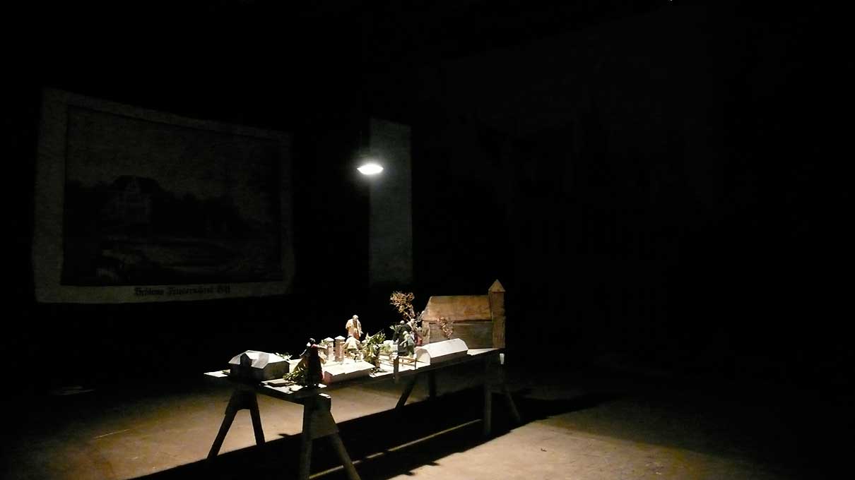 Auch in der Halle, im Kabinett des Kleist'schen Schloss Friedersdorf die Figuren zum Weg der Kirche in Nossendorf.
