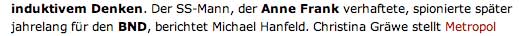 Ich wendete mich an die damalige Herausgeberin der ZEIT, Marion Gräfin Dönhoff, das kostete ihn seinen Job dort, und er sagte juristisch verbindlich zu, das von ihm Verfasste zu meinen Dingen, es war ein gierig begrüsstes Schlachtfeld, nie wieder zu verwenden und diesen Namen nie mehr zu nennen. Das wurde eingehalten. In all seinen Zusammenfassungen, Kommentaren zu den Opfern, wusste er was er meiden musste. Das sagte sein ihm perfider Instinkt der Vernichtung dann doch. Zwar war das Material dieser Existenz im Kampf mit der Zeit geeignet reinzulegen, und die Perfidie voraussehbar, reingefallen war der Hersteller einer Winifred Wagner vor der Kamera im Gegensystem(x) dessen, was Wert hat, vor dem Urteil der Geschichte, und der Schaden kam zum anderen, Üblichen, der Gestank der Hölle wurde noch mal heftiger, aber nun sind wir woanders, entkommen sind wir dem Fluch noch lange nicht. Das wusste auch er als Figur in diesm Getriebe mit dem er spielte.
