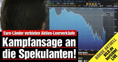 Frankfurt/Main (dpa) - Die NervositŠt am deutschen Aktienmarkt ist immer noch spŸrbar. Der Leitindex Dax gab in den ersten Handelsminuten einen Teil seiner Erholung wieder ab und stand knapp 2 Prozent tiefer als gestern, als er das erste Plus nach elf Minustagen in Folge verbuchte. Bšrsenaufsichten in mehreren europŠischen LŠndern gehen jetzt gegen sogenannte LeerverkŠufe von Aktien vor. So soll die Mšglichkeit eingeschrŠnkt werden, aus der Verbreitung falscher GerŸchte Profit zu schlagen.