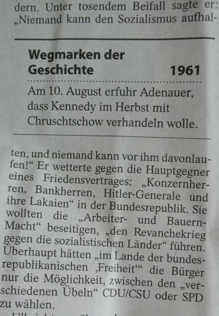 morgen, am 13. August vor 50Jahren die Mauer gebaut, mitten durch ein Land und die Menschen, mit ihrem Pendent am 9. November 1989 als sie wieder aufging. Das Symptom der Schliessungen von Öffnungen von Fenstern, Türen in Gestalten von Wegen für alle, trotzt allen Reden der Freiheitsliebe am abseitigen Ort auf anschauliche Weise. Und zeigt, wie schwer Freiheit ist, sich zu bewegen oder zu ertragen, für Augen und Füsse und sie zu verantworten...
