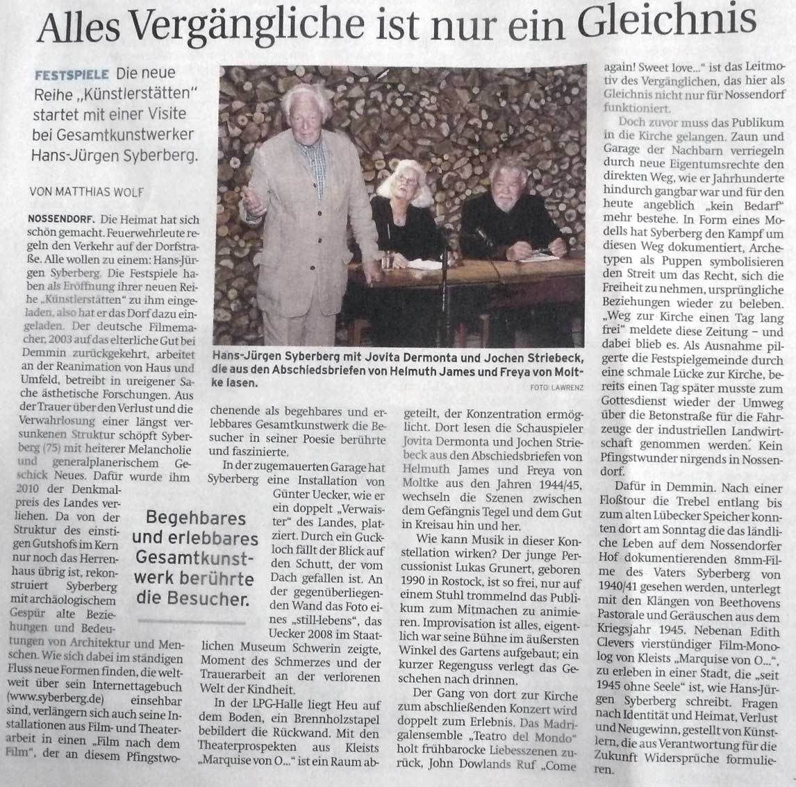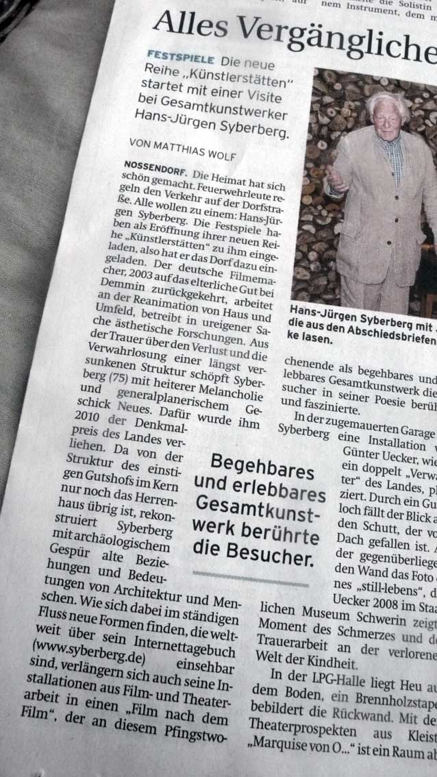 und sie kamen aus Berlin und Hamburg und München und Düsseldorf und Marhin und Quitzin und Güstrow oder Loitz und Demmin und Schwerin, wie Rostock(mit der DVD von der Lesung zugesch.), auch Medrow -aber nicht der Bürgermeister von Nossendorf, die für dies hier verantwortlich ist, wenn es geschlossen ist- und nur für einen Tag offen sein kann, frei nochmal