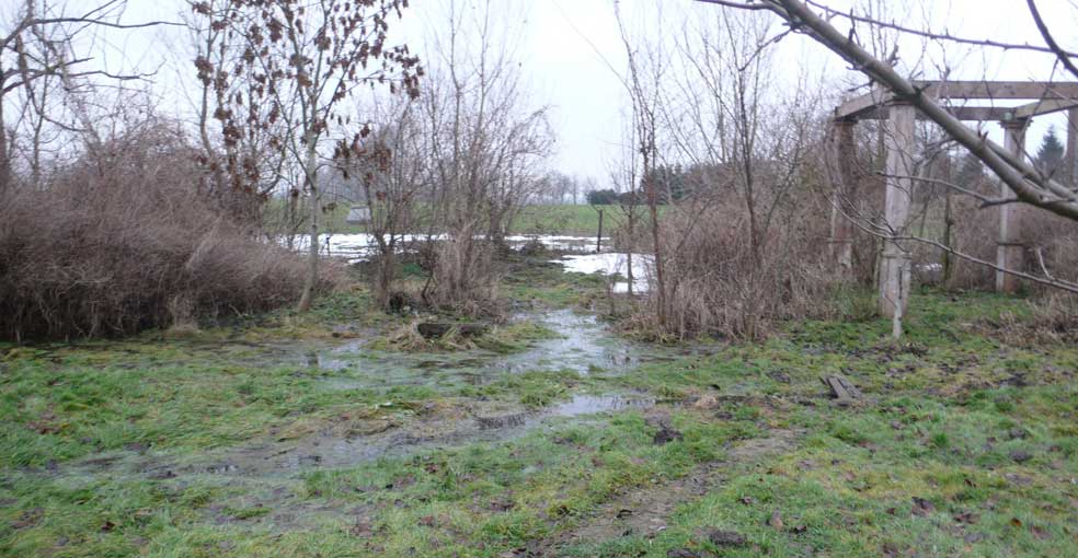 Wie sagt A. "das fliesst auch wieder ab". Aber, was in den Zeiten der DDR egal war, weil ohne Kultur-Interessen, drängt nun nach neuer Fassung. Wenn wir nicht einen Sumpf wollen, des Frühjahrs mit speziellem Baum und heckenbestand, der anderes ausschliesst, also Urwuchs, dann wird man Lösungen der Entwässerung suchen. Was man früher Kultivierung des Landes nannte,.Wovon alle Generationen der Kultievierung des Landes und der Land-Wirtschaft lebten. Die Flurerneuerung zeigte sich uninteressiert. Sie hebt alte Wege auf und isoliert damit die Kirche und den Friedhof. Das Wasser aber steht bis zum Hals der Häuser in den Kellern bis in den Wänden unters Dach.