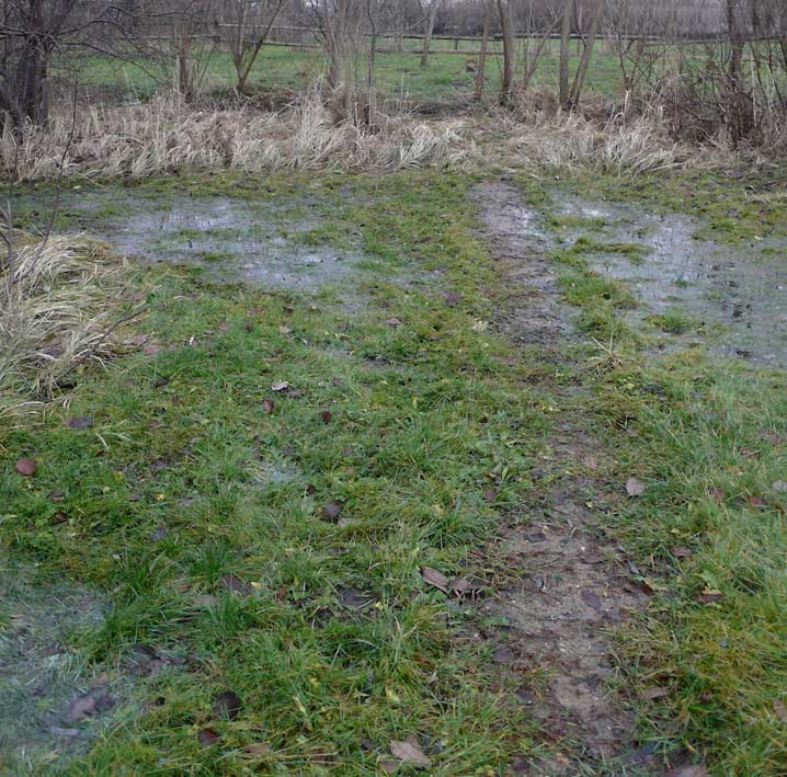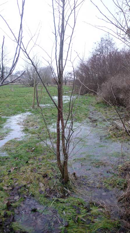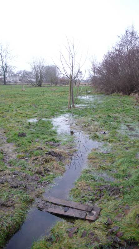Das Wasser am Ende des Parks, wo nun der frühere Graben verrohrt ist, dass nur neue Ablüsse in den Teich das Wasser sammeln , der aber das Wasser bei grosser Fülle zurückstaut.