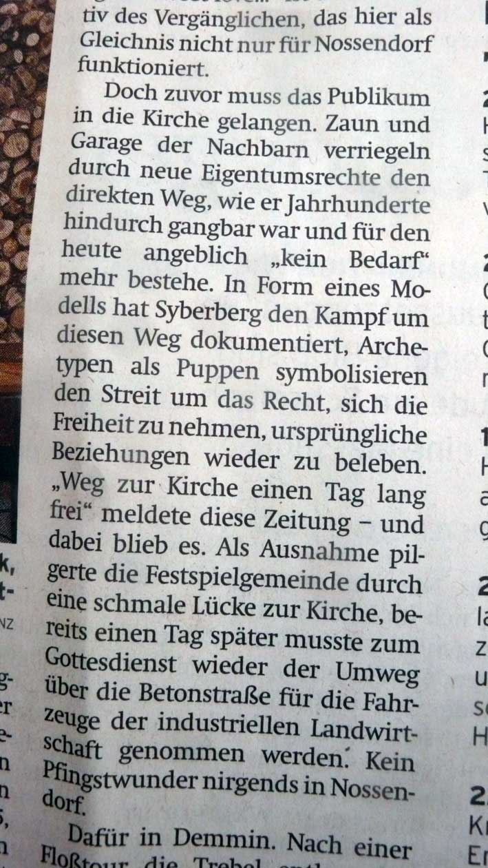 Das Konzert der Festspiele Mecklenburge-Vorpommern in Nossendorf am letzten Sonnabend den 11. Juni 2011. Und wie man dahin kam.