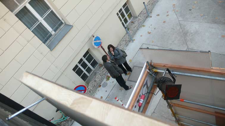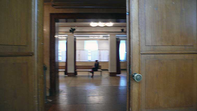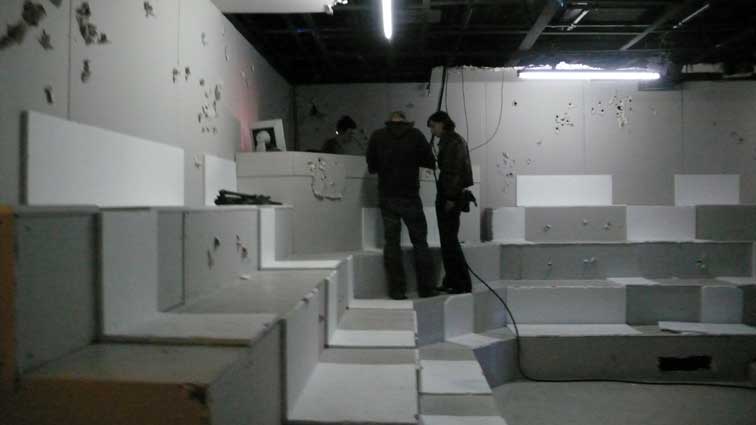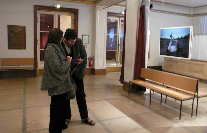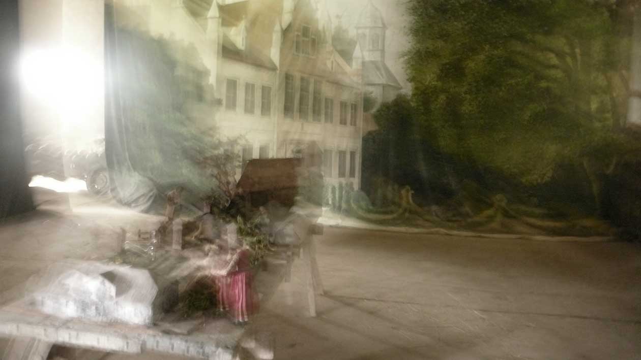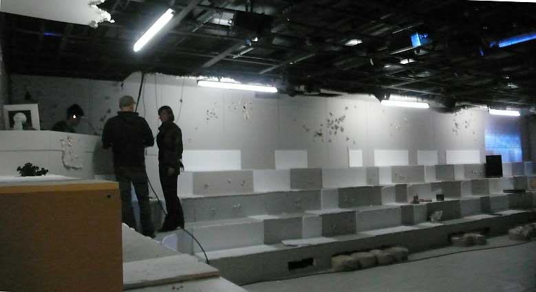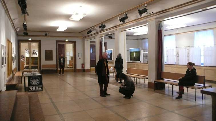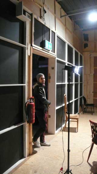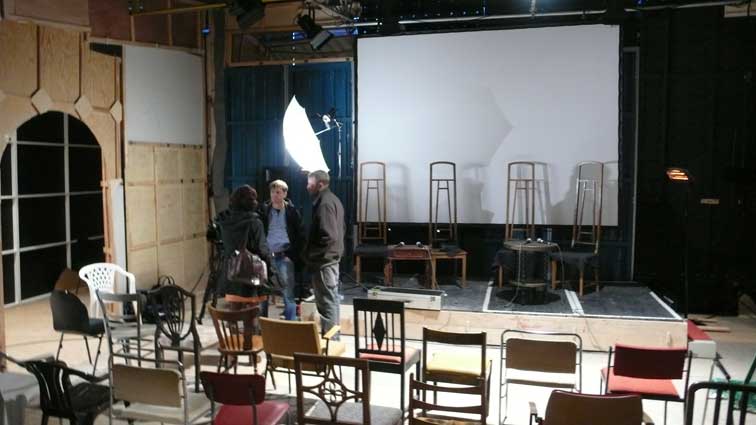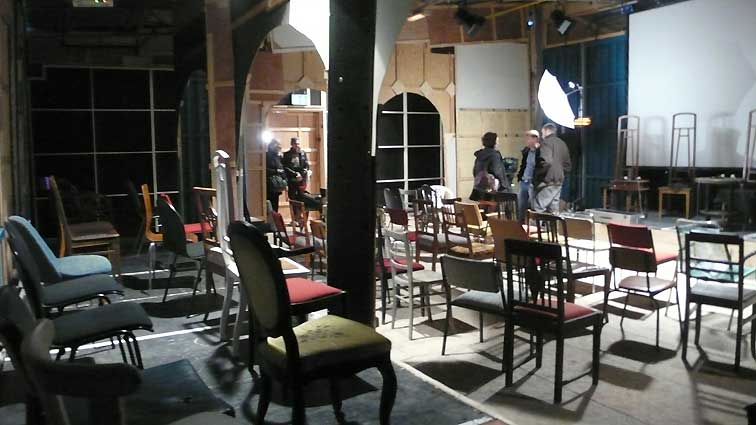 in eine Richtung die Projektion- in die andere die Stühle, noch einiges zu tun. Wie immer, dass es wird. Vorhänge und weg, was stört. Konzentriert das Licht und der Raum.