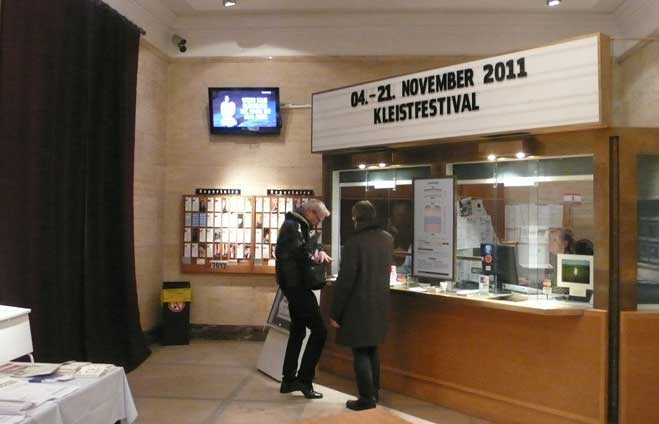 Über der Kasse empfängt uns eine Filmreklame, wenn das man gutgeht, mit Kleist und uns.