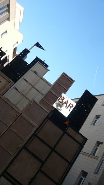 die Idee war eine Box auch als Raum schaffen hineingesetzt in was auch immer rundum, für ein paar Stunden von 15 Uhr bis 2 Uhr nachtzs.