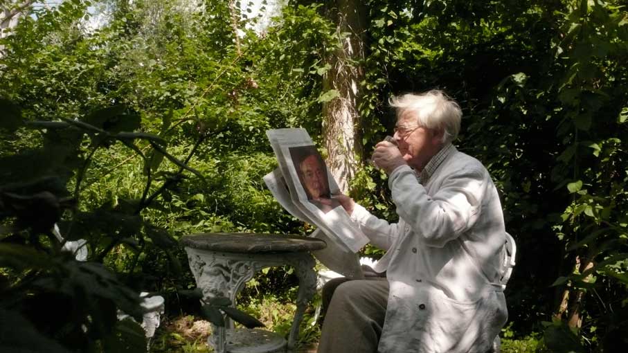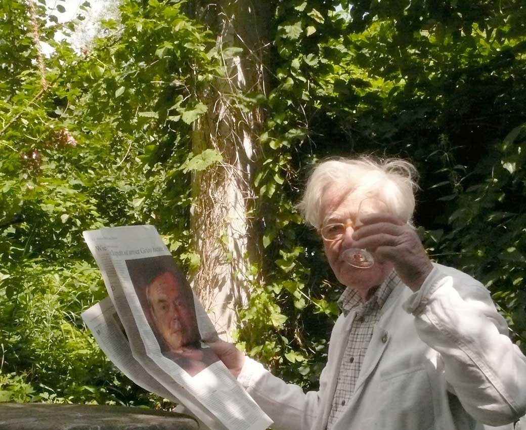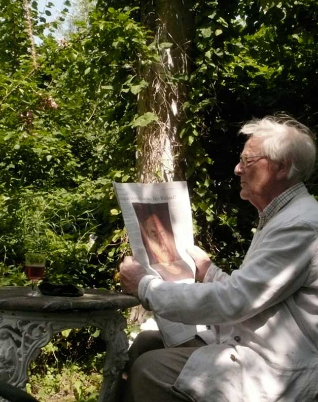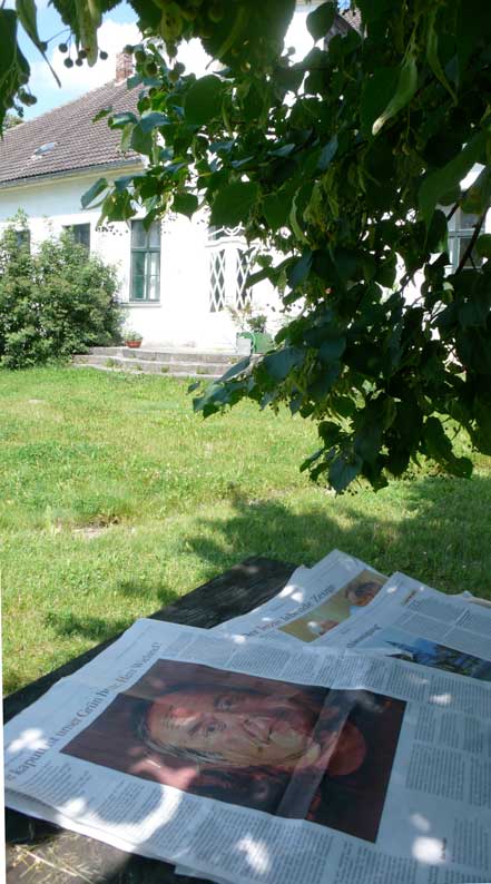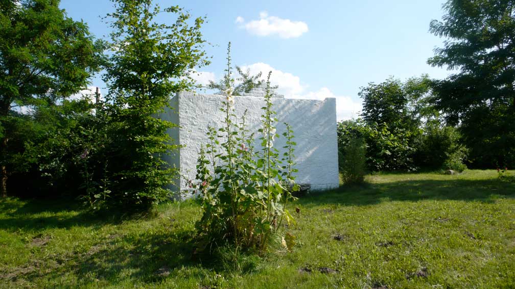 Gefasst nun zu verschicken den Freunden. So das andere, frei und leichten Ganges. Zwischen Haus und Kirche. Wie ein Floss durch das Land zwischen Schilf und Rosen des Wassers, zwischen den Orten. Und Gedanken. Der Bilder und Töne schweben und manchmal auch in Räumen zu durchschreiten, im Sitzen und Gehen.
