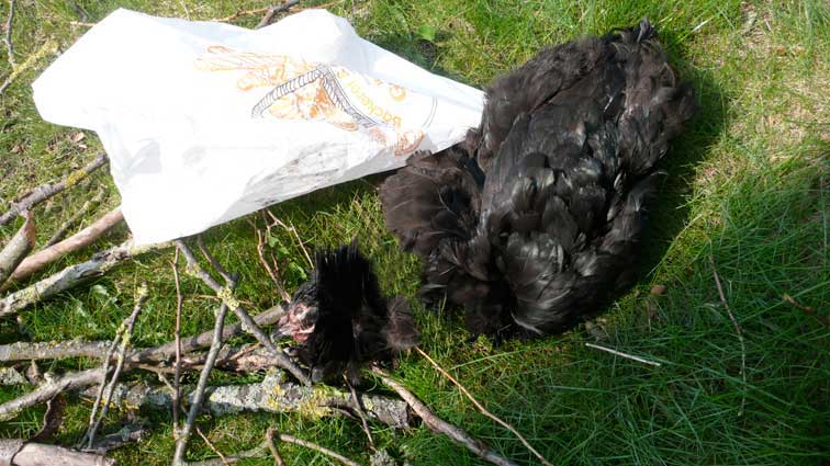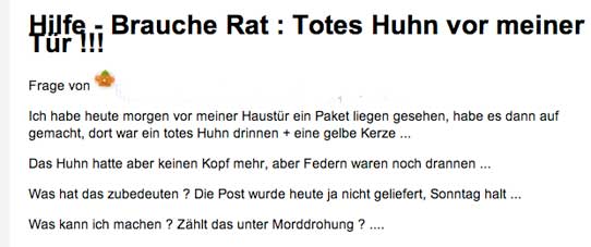 Unter den abgelegten Dingen vor dem Tor zu Nossendorf aber lag dieses Huhn in einem Plastiksack.