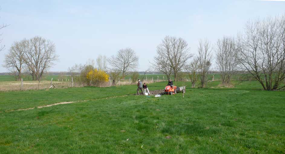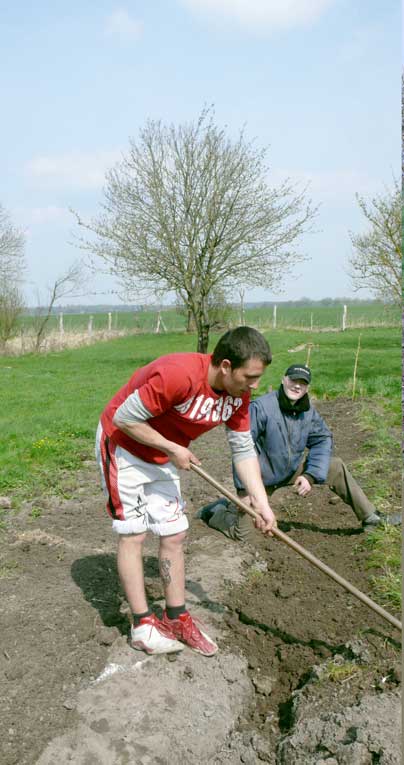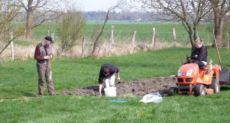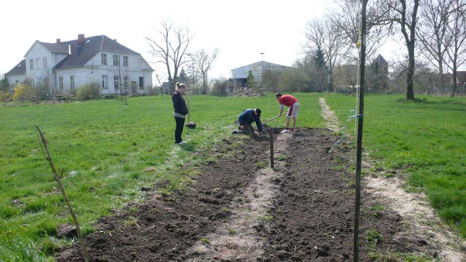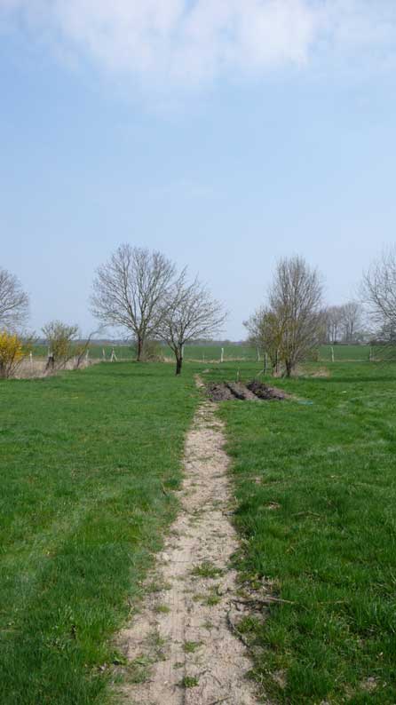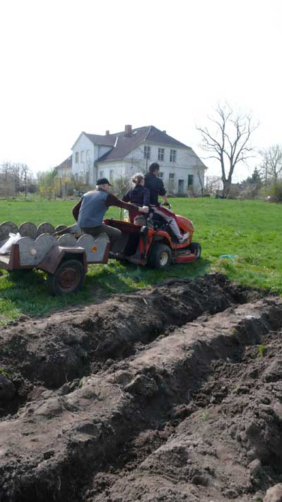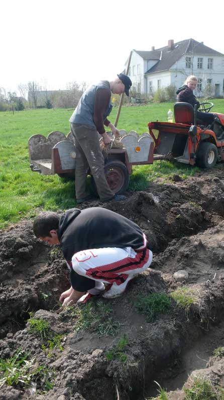 Der neue Spargel aus der Baumschule in Klein Zetelvitz kommt an die alte Stelle, heute mitten in die Wiese, an die Stätte des alten, grossen Gartens,wieder an den neuen Weg wie damals.