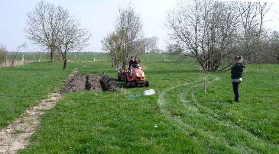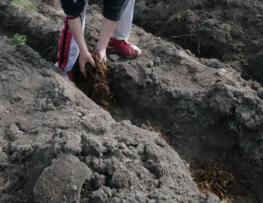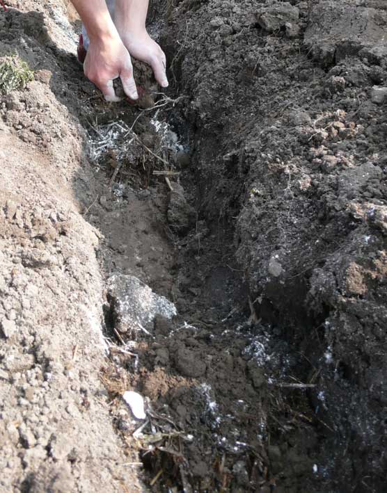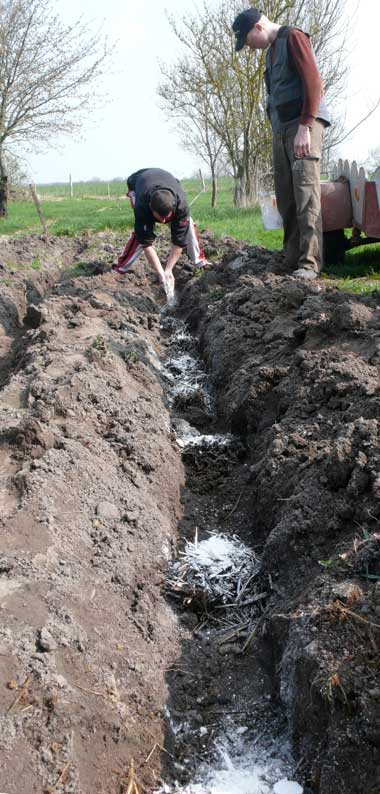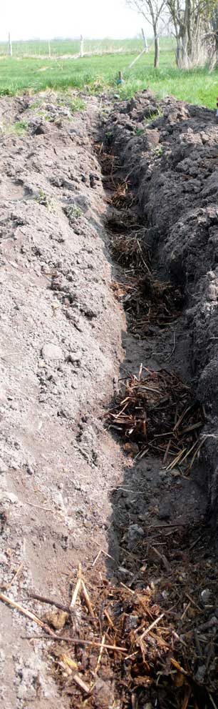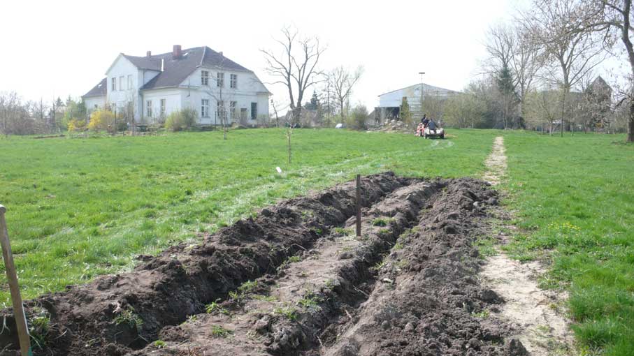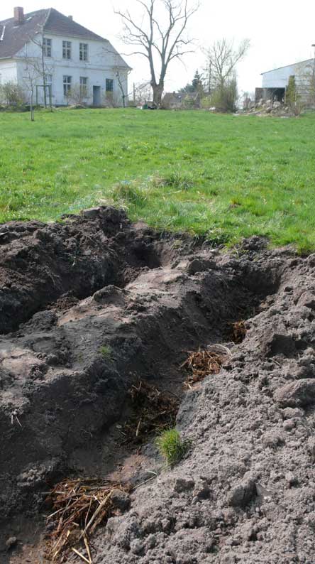 ausheben der Pflanzgräben nach Mass in Tiefe und Abstand von Reihen und voneinander,