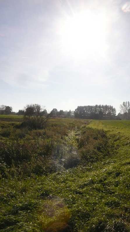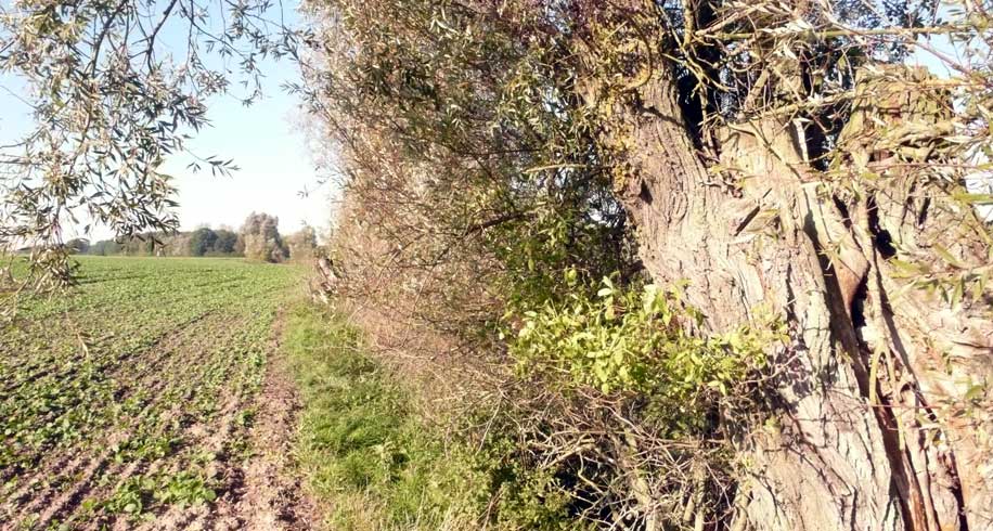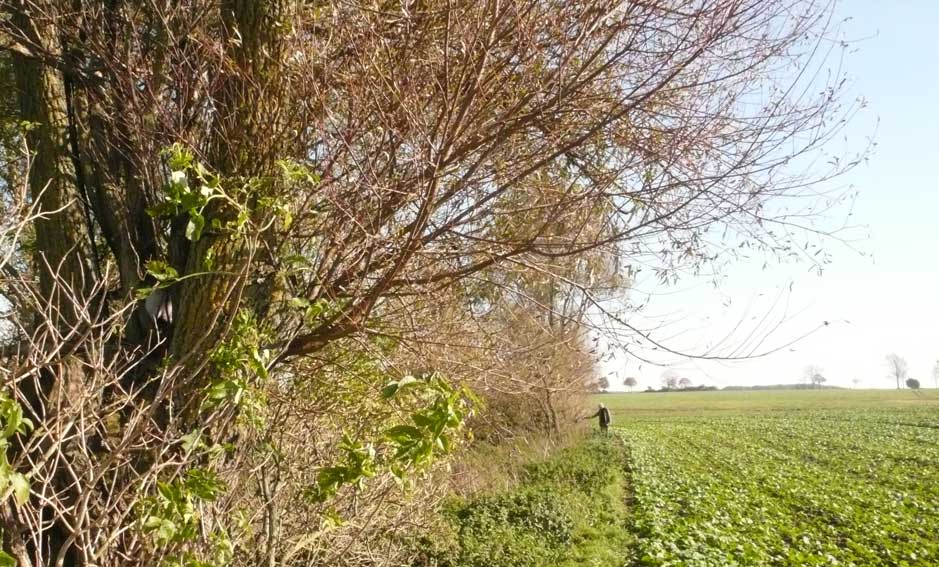 Die begrenzenden Hecken wenige noch erhalten schützen den Gehenden vor den Winden, und nicht nur den. Sie heute den neuen Feld-Eigentümnern der Wende-Gewinnler von den erhaltenen Flächen durch die BVVG (Treuhand)abzuzieen, empört diese. Sie sprechen von Enteignung, deren ungesegnete Ernte sie heute einfahren. Früher waren diese hecken und Teiche im Feld Teil des Eigentümers und seiner Sorge Pflicht.