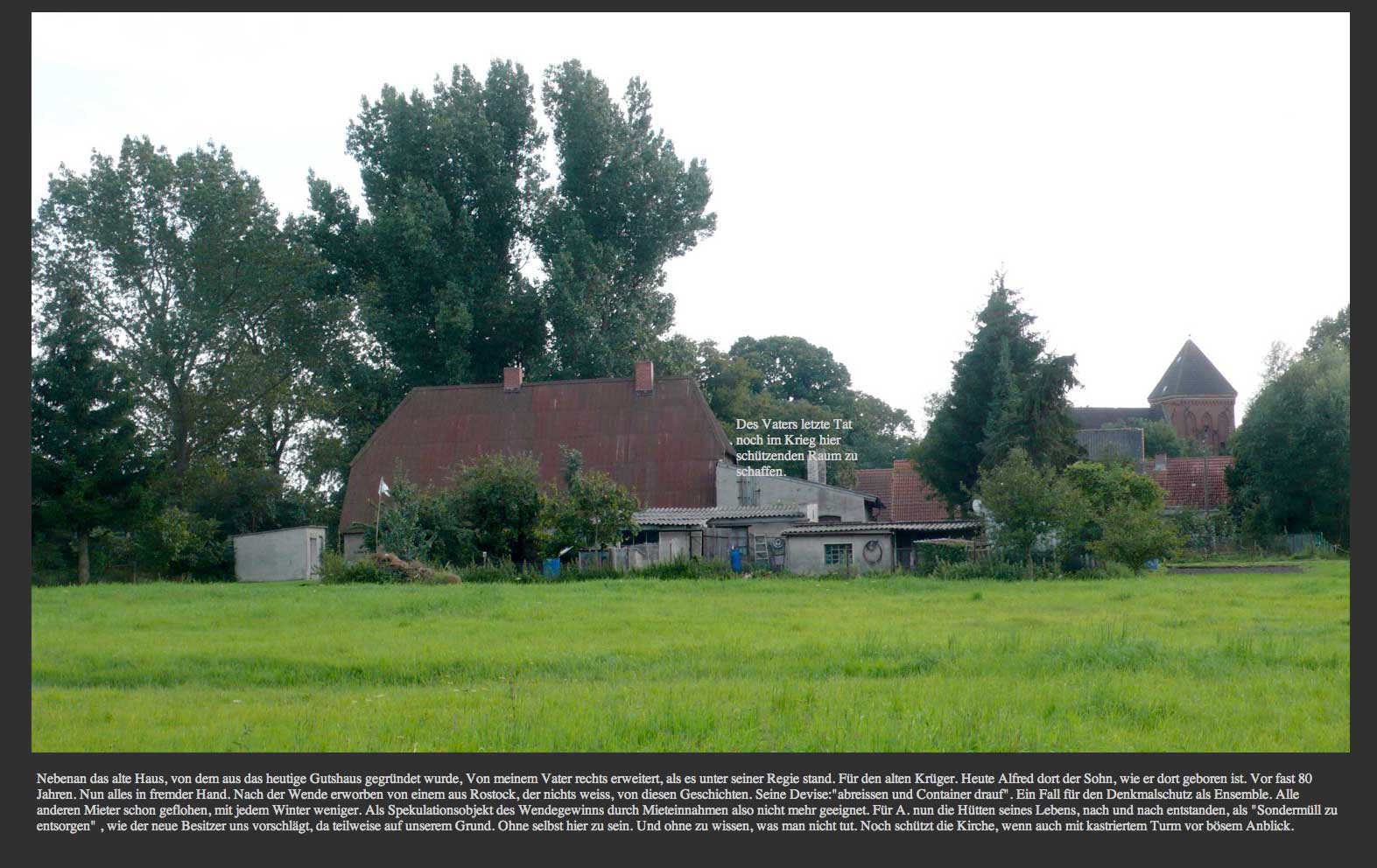 würde ich verfahren, wie Sie empfehlen und alles auf dem Gelände abreißen, das Ihr Mieter benutzt, würde das Ihren Mieter vertreiben und die Miete gefährden, und es wäre für Sie kein Frieden mehr im Dorfe.
