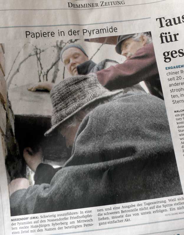 Beim Abrriss der vorigen Pfeiler von 1991war da nichts. Nichts zu berichten, kein Datum, keine Namen. Ins Namenslose, Zeiten-ohne verschwinden sie in die Entsorgung der Geschichte. Wenn nicht wir von ihnen berichtet hätten hier.