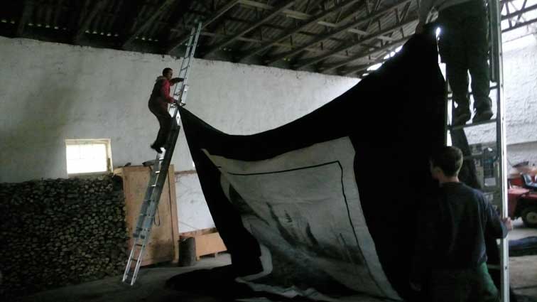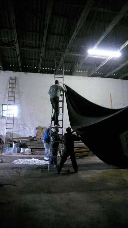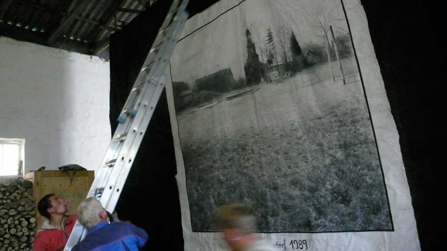 in diesem Gebälk der ausgebrannten Scheune sollte Die Nacht als Monolog auftreten und tat es dann auch als Koordinaten der Gedanken mit wechselnden Figuren und Szenerien. Und Zurückgekommen, war es das erste Gebäude als Halle nun für vielerlei Zwecke ein Gehäuse von 4 Wänden und einem Dach mit den verbindenen Balken im Kopf.