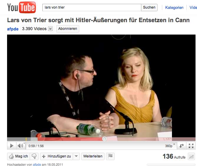 Später sagte der Däne dann noch trotzig: "Okay, ich bin ein Nazi." Seiner Hauptdarstellerin neben ihm, Kirsten Dunst, war während seiner Ansprache schon das Lächeln vergangen. Am Ende der Pressekonferenz soll von Trier dann noch von der "Endlösung für Journalisten" gemurmelt haben.