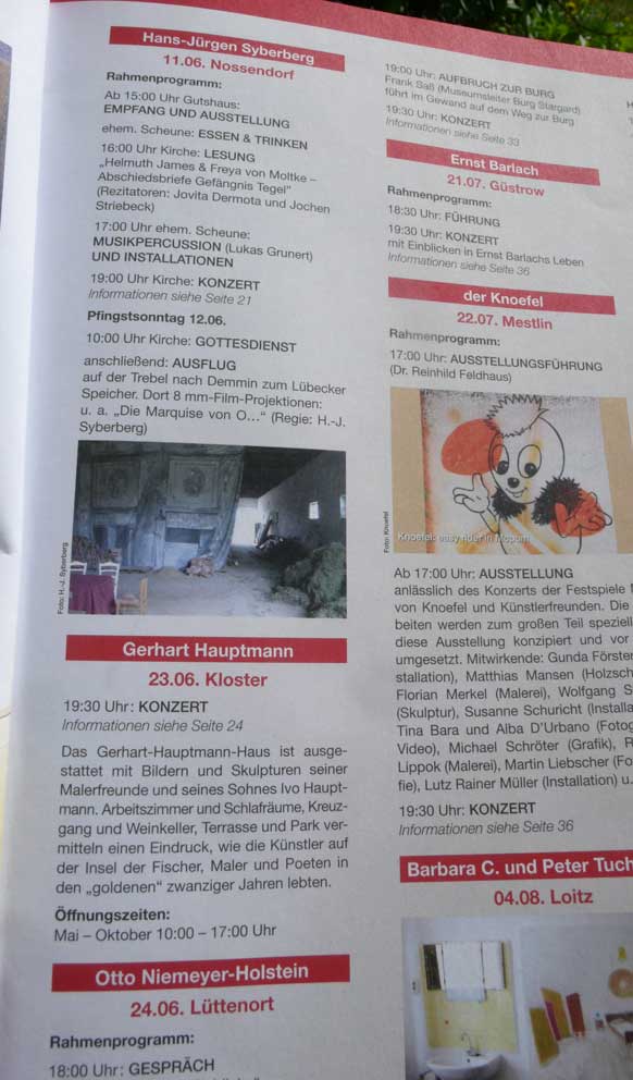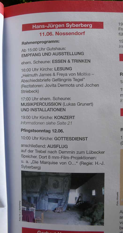 Wir werden dann in der Halle sehen was geplant war, im Modell mit Namen und noch so einiges andere, was man Installation nennt. Das Haus aber und der Hof und die Kirche sind bereit, in Zusammenarbeit mit dem Demminer Speicher am Hafen alles andere vergessen zu lassen. Gerade dann. Alle Bewohner des Dorfs sind eingeladen zu Konzert und Lesung in der Kirche und zu den Veranstaltungen und zum Essen in der Halle.